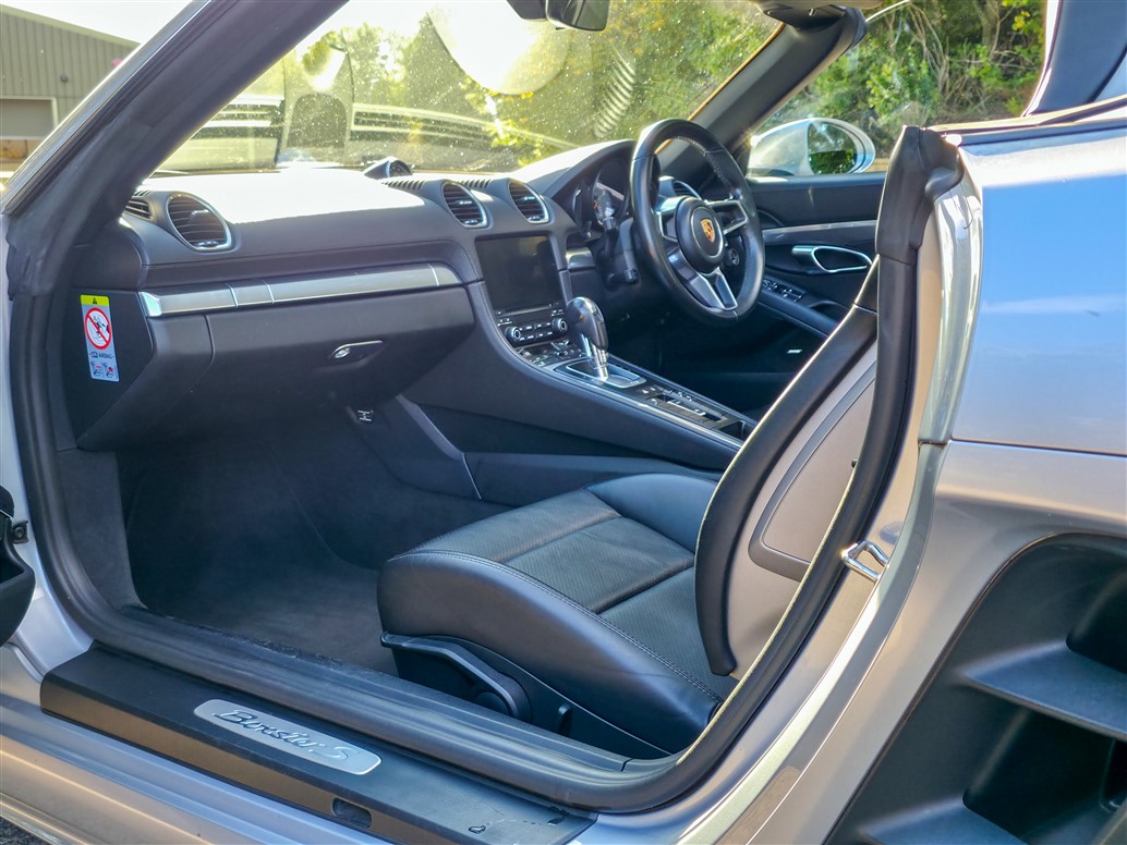 This 718 Boxster S is powered by a 2.5-litre turbocharged flat-four engine producing 345 BHP and 420 NM of torque. When paired with the PDK transmission and Sport Chrono Package, it accelerates from 0–62 mph in just 4.2 seconds and continues on to a top speed of 177 mph. True to Porsche’s engineering philosophy, the mid-engine layout ensures razor-sharp handling and a level of precision that makes every corner a thrill.