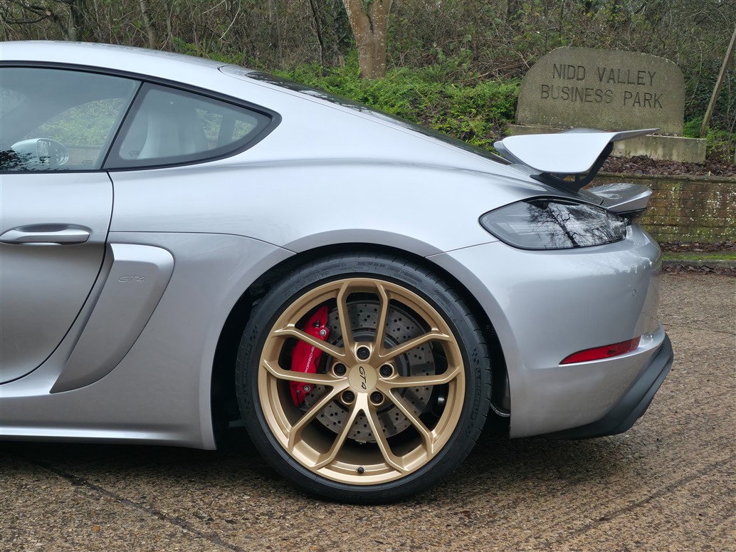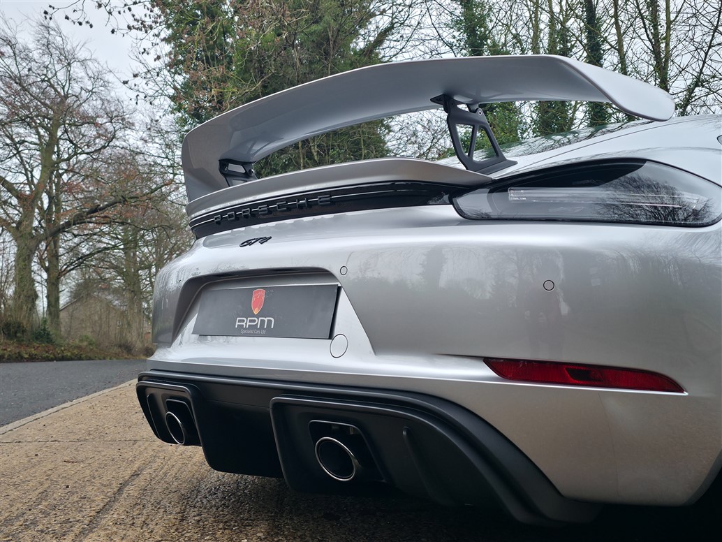 RPM are thrilled to offer this exceptional Porsche 718 Cayman GT4 for sale. Finished in GT Silver Metallic with a Black leather and Alcantara interior, this example is further enhanced by Aurum Satin wheels.