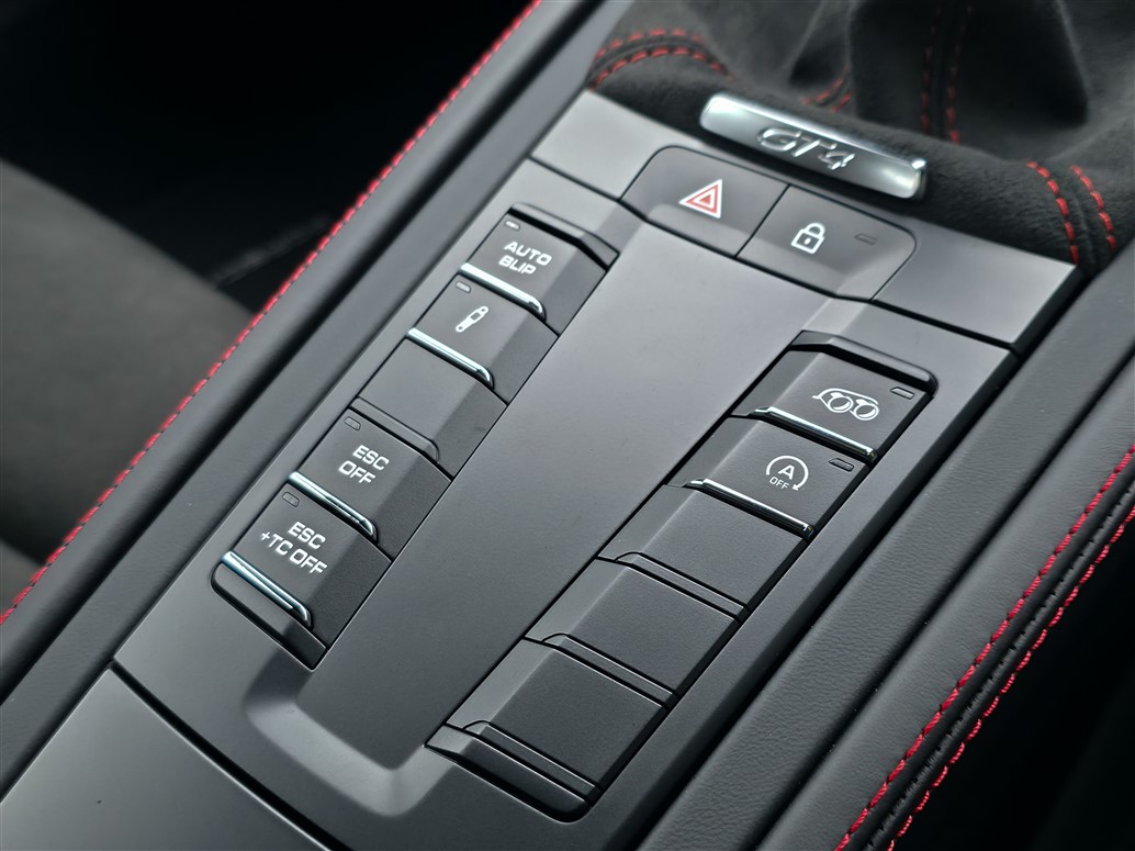 This GT4 has been thoughtfully specified to offer the ideal balance between driver engagement and everyday usability. The 18-way adaptive Sports Seats provide excellent comfort and support, making the car equally suited to longer journeys as it is to spirited driving. Steel brakes are fitted, a configuration favoured by many enthusiasts for their strong, consistent performance, improved feel on the road, and lower long-term running costs without detracting from the car’s formidable capabilities on track.