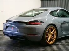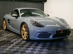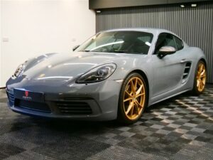 We are thrilled to offer this stunning Porsche 718 Cayman T for sale. This really does look fabulous in Porsches Arctic grey with contrasting Aurum gold Carrera alloys.