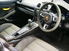 The Cayman T is emphasised by its extended standard equipment package which sees the fitment of 20 inch Carrera alloys, PASM sports chassis with a 20 mm lower ride height, the T saw this offered for the first time alongside the 2.0l power unit, PTV Porsche Torque Vectoring, including a mechanical limited slip differential. There were also other touches such as a shortened 6 speed manual gear lever with details highlighted in red and the all-important weight saving GT style fabric inner door pulls.