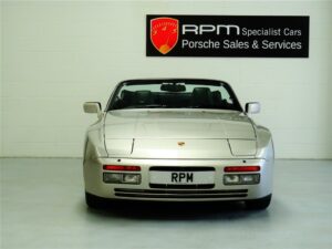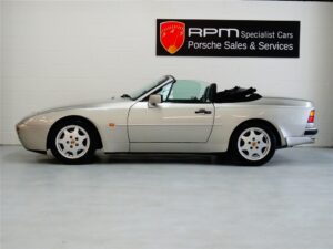 The opportunity to purchase a stunning low mileage Porsche 944 cabriolet which is finished in Zermatt silver metallic with a black partial leather interior and a black cabriolet hood. This is a UK car that was registered in May 1990 and supplied to its first by Porsche Dick Lovett in Swindon. This car has since covered only 59483 miles across 6 owners, the most recent being a customer of ours who has owned the car for over 7 years.