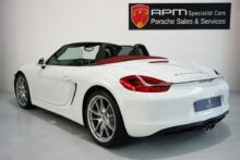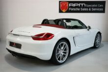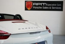 RPM are pleased to offer this beautiful, 2014 Porsche 981 Boxster 2.7 for sale finished in Pure white with a complementing red roof. Covering only 40,856 miles from new, this 981 Boxster was first supplied and delivered by Porsche Centre Leicester in September 2014