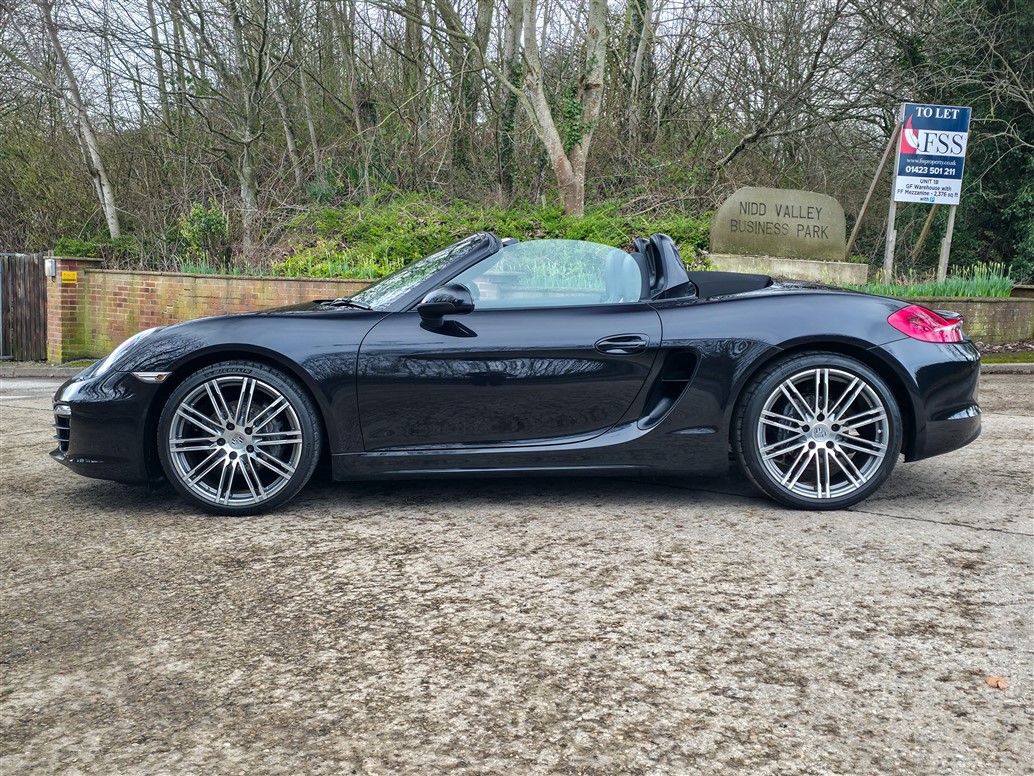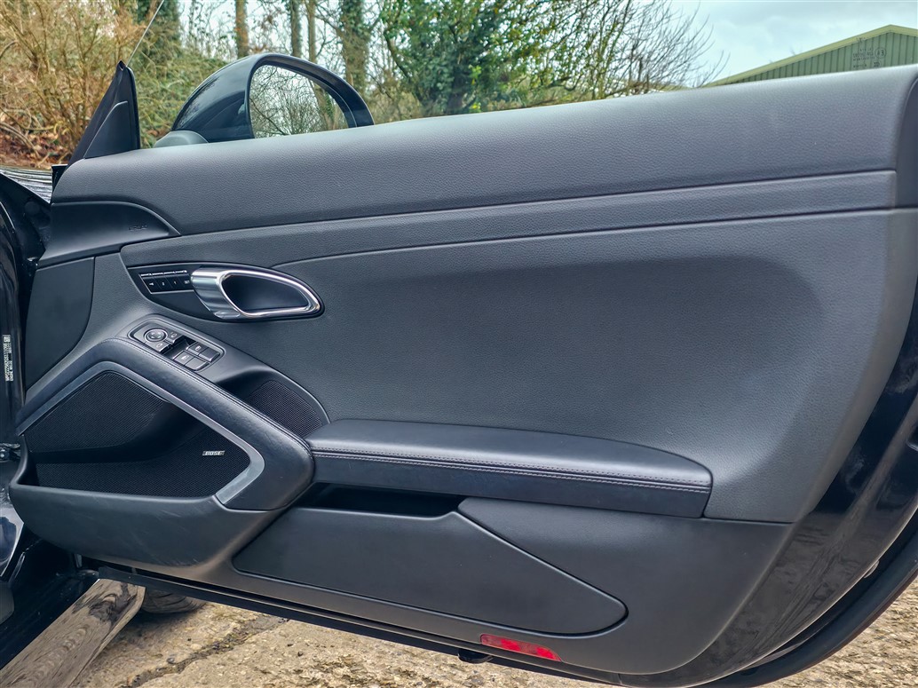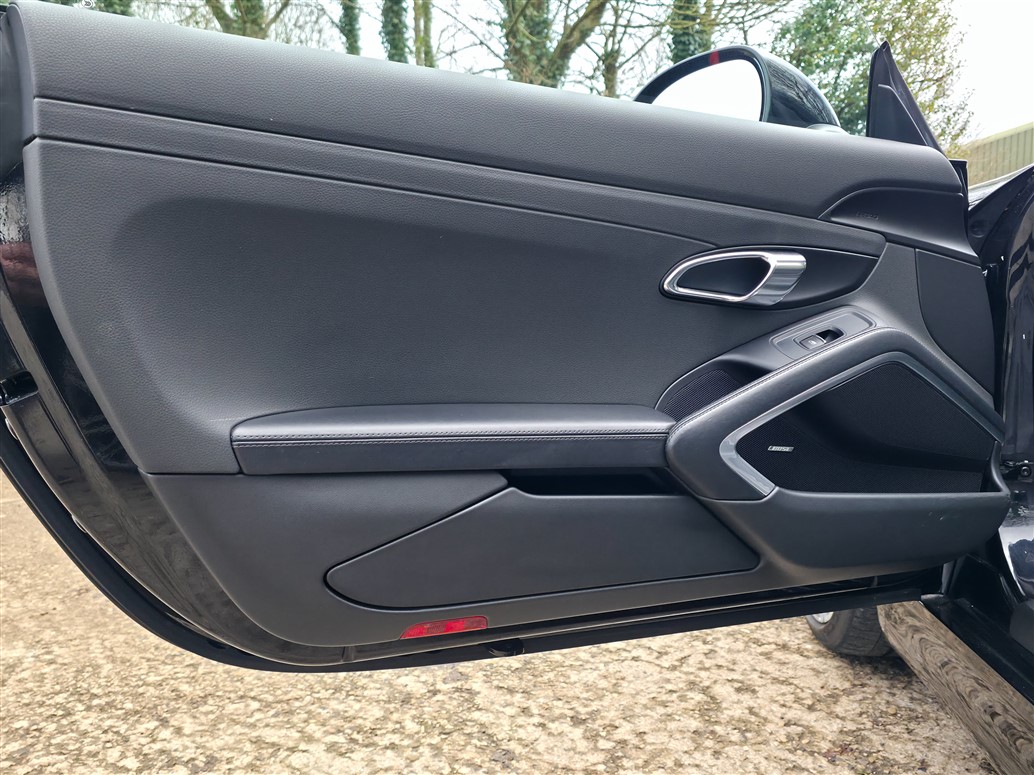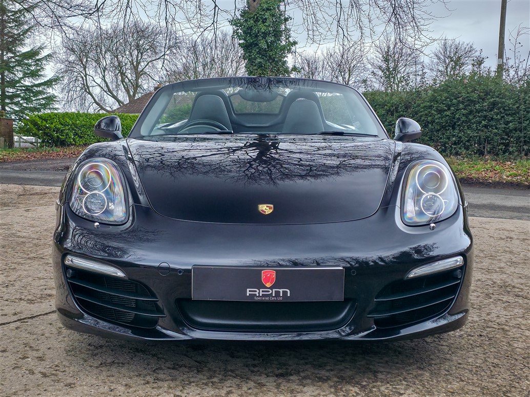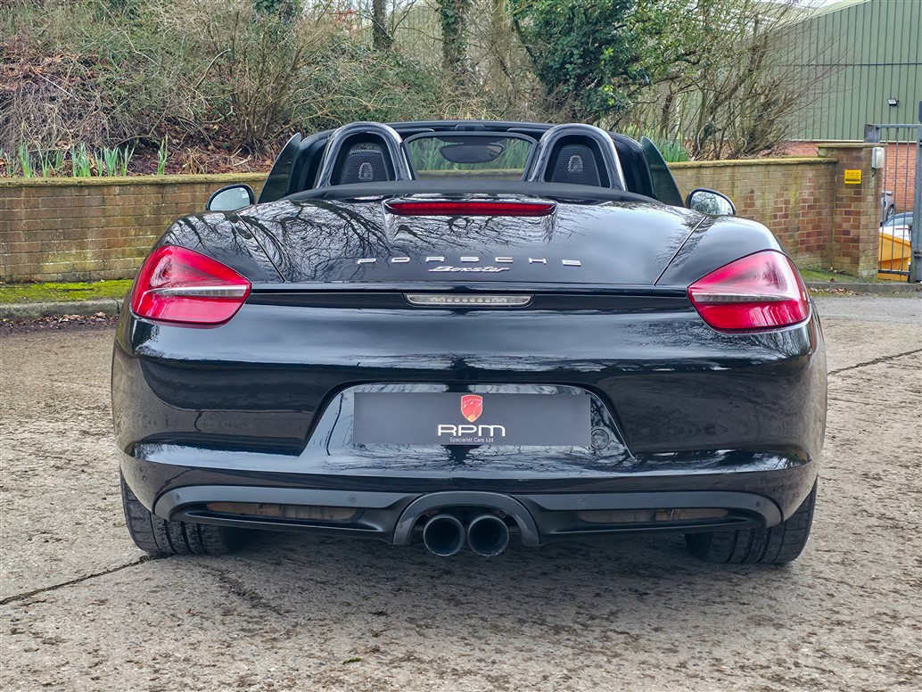 RPM Specialist Cars are delighted to present this 2015 Porsche 981 Boxster Black Edition for sale. Offered as a limited-production, high-specification model, the Black Edition stands apart from the standard Boxster with its black exterior accents, black model badging and a more comprehensive level of factory equipment. Bi-Xenon headlights, Porsche Communication Management (PCM), Sports Seats and upgraded alloy wheels were all specified as standard, resulting in a notably strong overall package.