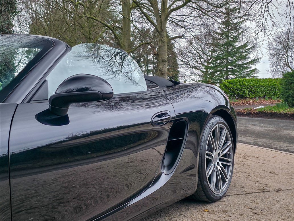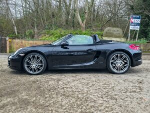 The Boxster Black Edition is powered by the 2.7-litre naturally aspirated flat-six engine, producing 265 HP and 280 Nm of torque. Its mid-engine configuration provides excellent balance and composure, with performance figures of approximately 5.7 seconds from 0–62 mph and a top speed of 164 mph, delivering a driving experience that remains engaging and confidence-inspiring.