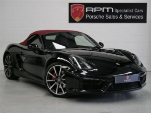 RPM is pleased to offer this 2014 Porsche 981 Boxster GTS for sale. This GTS is finished in Jet Black Metallic, with black leather and an Alcantara interior. With only 14,467 miles on the clock, this 981 was first supplied and delivered by Porsche Centre Solihull in July 2014