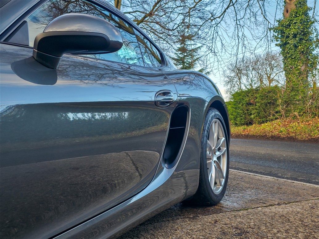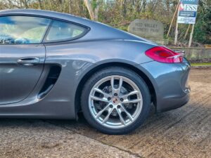 This Porsche Cayman will undergo our usual full pre-sales inspection alongside its next scheduled service in our Harrogate-based Porsche specialist workshop and undergo a full interior and exterior detail. This includes multi-stage paint correction and finished with a coat of protective wax.