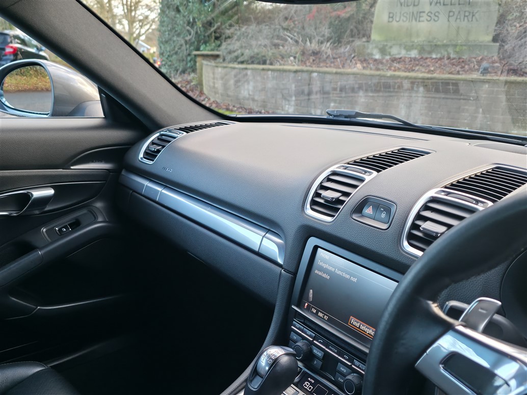 Powered by a 2.7-litre naturally aspirated flat-six engine producing 275 BHP and 290 Nm of torque, this Cayman is paired with the 7-speed Porsche Doppelkupplung (PDK) transmission. The mid-engine layout delivers excellent balance and responsiveness, resulting in a composed yet engaging driving experience. Performance figures include a 0–62 mph time of 5.6 seconds and a top speed of 164 mph, combining usability with genuine driver appeal.