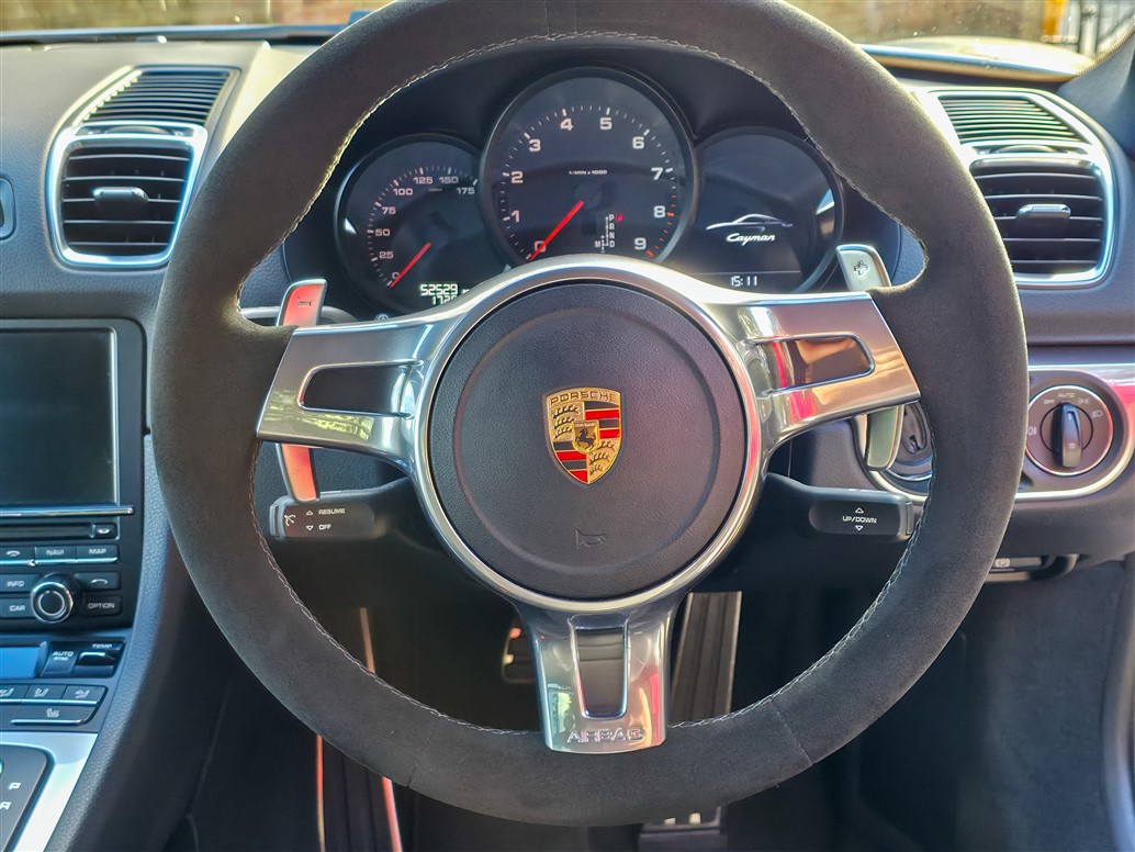 Powered by a 2.7-litre naturally aspirated flat-six engine, the Cayman produces 275 BHP and 290 Nm of torque, paired with a 7-speed Porsche Doppelkupplung (PDK) gearbox. The mid-engine layout provides excellent weight distribution and handling balance, allowing the car to feel composed and responsive in all conditions. With a 0–62 mph time of 5.6 seconds and a top speed of 164 mph, it offers performance that remains as impressive today as when new.