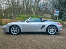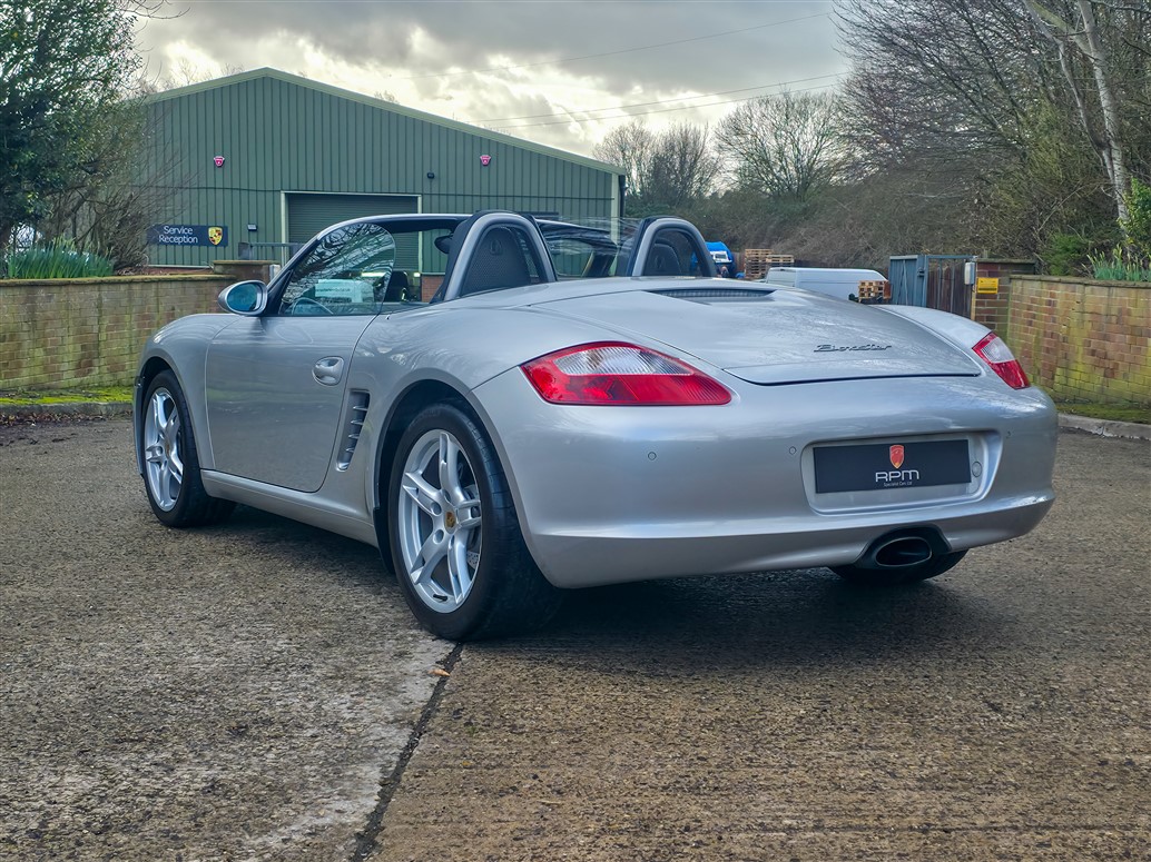 RPM Specialist Cars are pleased to offer this 2008 Porsche 987 Boxster for sale, finished in Arctic Silver Metallic with a Black cabriolet roof and matching Black leather interior. The 987 generation is well regarded for its balanced chassis and naturally aspirated flat-six character, offering a pure and engaging sports car experience in a compact, usable package.