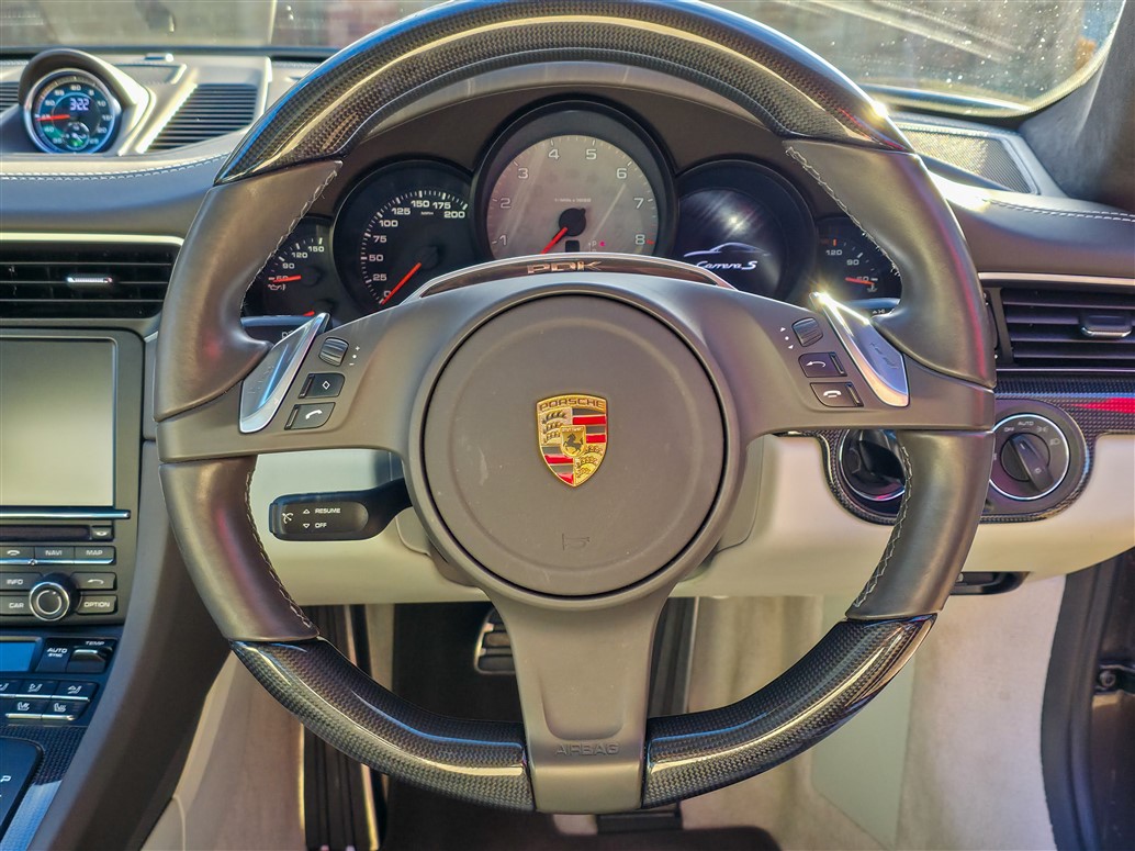 Powered by a 3.8-litre naturally aspirated flat-six engine, this Carrera S produces 400 BHP and 440 Nm of torque, paired with the 7-speed Porsche Doppelkupplung (PDK) gearbox and Sports Chrono Package. This setup enables a 0–62 mph time of 4.5 seconds and a top speed of 188 mph, delivering a precise and engaging driving experience that is characteristic of the 991 generation.