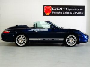 This 996 C2 cabriolet is presented in stunning Lapis blue mettalic paintwork with metropole blue leather interior, it has covered only 86501 miles and was originally supplied to its first owner by Porsche centre Newcastle in September 2001.