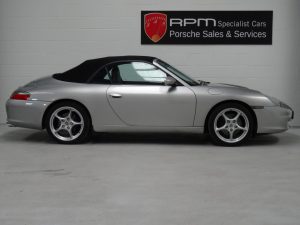 This car was supplied with the following options: – extended leather interior trim, PSM Porsche stability management, Top tinted windscreen, 18 inch Carrera 5 spoke alloys. This car also retains its hard-top roof, which many cars no longer have.