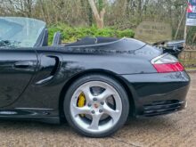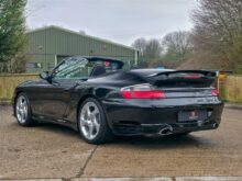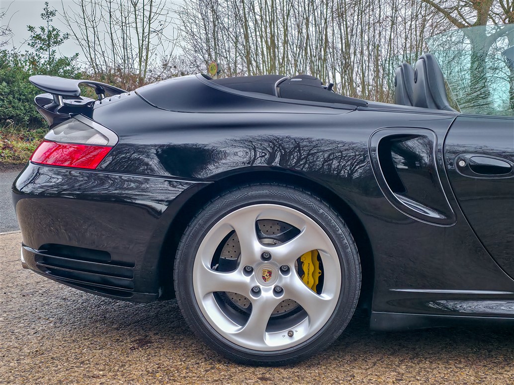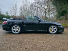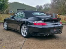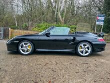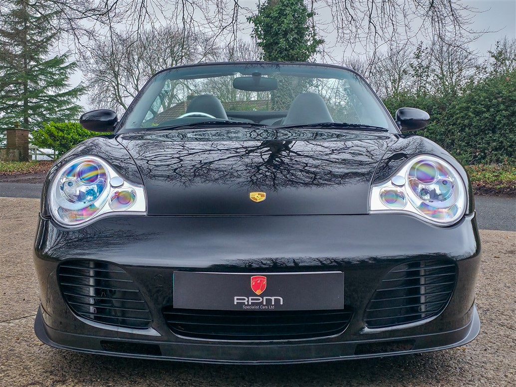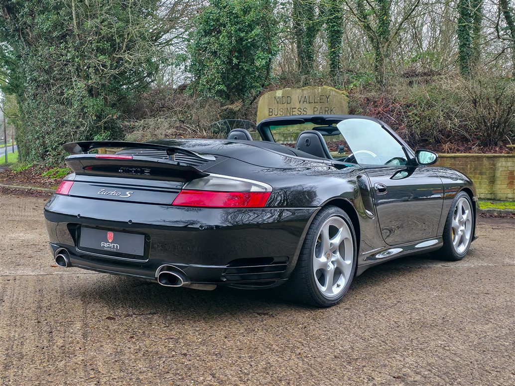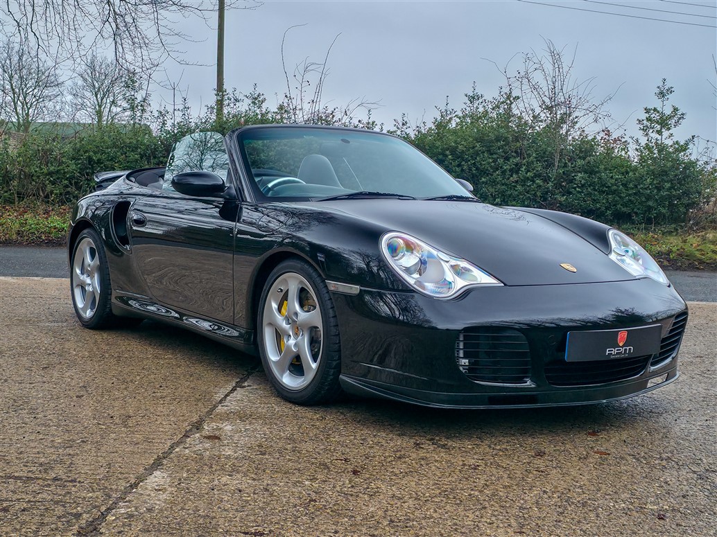 RPM are delighted to offer this increasingly rare Porsche 996 Turbo S Cabriolet for sale. Finished in Deep Black with a Black leather interior and matching black cabriolet roof, this example presents in outstanding condition and represents a desirable configuration of the 996 Turbo S.