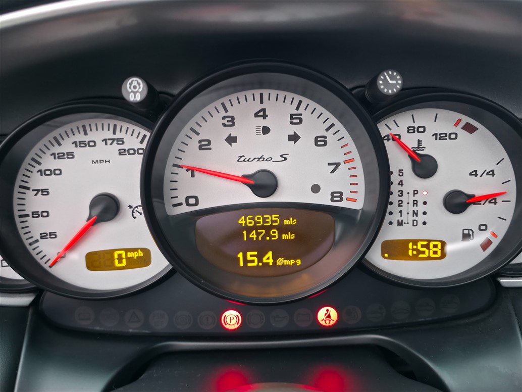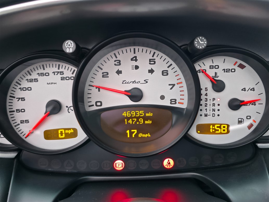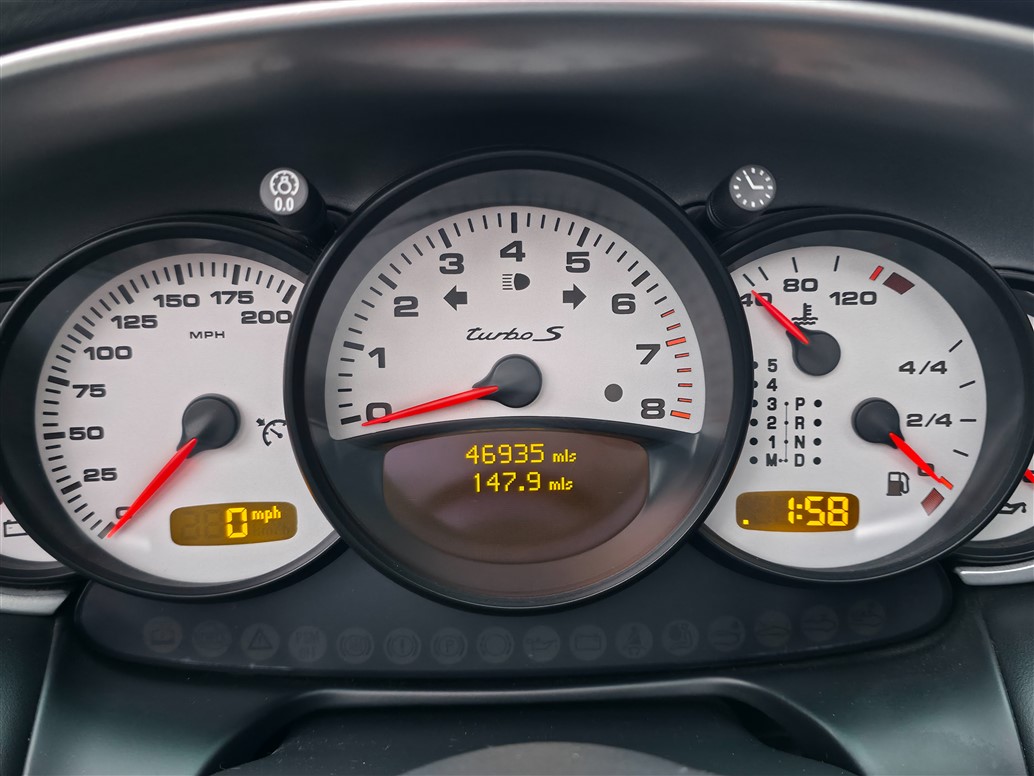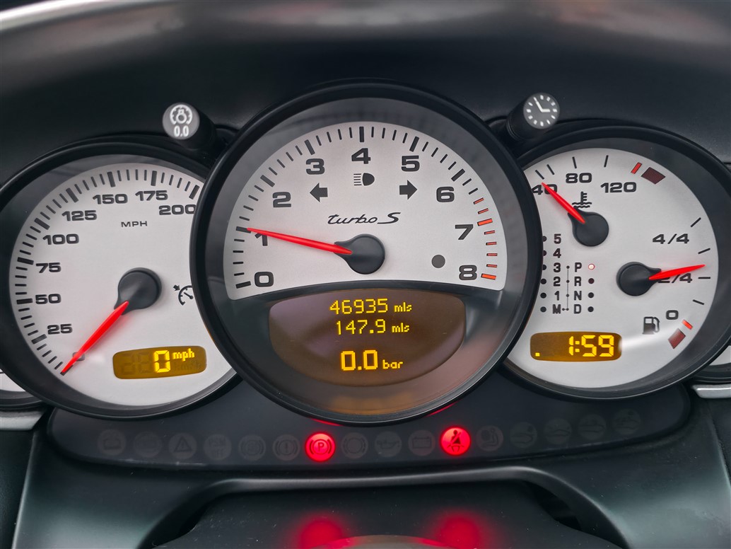 Powered by the Mezger-derived 3.6-litre twin-turbocharged flat-six engine, the 996 Turbo S produces 450 HP and 620 Nm of torque, delivered through Porsche’s all-wheel-drive system. Turbo S specification included the factory X50 power upgrade and Porsche Ceramic Composite Brakes (PCCB) as standard, providing exceptional braking performance and reduced unsprung weight. 0–62 mph is achieved in around 4.0 seconds and a top speed exceeding 190 mph.