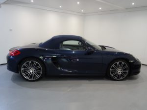 A great Porsche Boxster 981 2.7 PDK finished in stunning dark blue metallic with agate grey and pebble grey two tone leather interior. This is a 2015 model year car first registered in December 2014, it is a low mileage example having covered only 15107 miles from new.