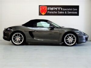 This is a lovely Porsche Boxster 981 2.7 PDK that has covered 63235 miles from new, supplied in Agate grey metallic with a black partial leather interior and a great options list.