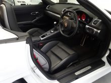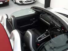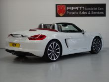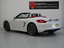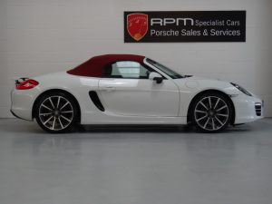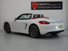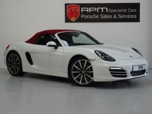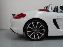 Porsche Boxster 981 2.7 in an amazing colour combination, Carrera White with a contrasting Black interior and red convertible top. This car has covered only 16505 miles from new and comes with what is these days becoming a rare option of a manual gearbox.