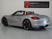 Porsche 981 Boxster 3.4 S in an amazing colour combination, Rhodium silver metallic and Carrera red natural leather. This car has covered less than 20000 miles from new and comes with the highly desirable PDK gearbox.