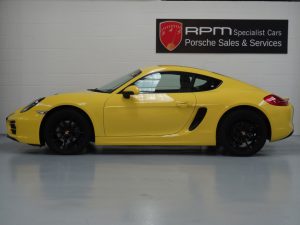 An amazing Porsche 981 Cayman 2.7 in Racing yellow that has covered only 11693 miles from new, this model was ordered with contrasting black interior including the desirable leather sports seats and is fitted with the PDK gearbox.