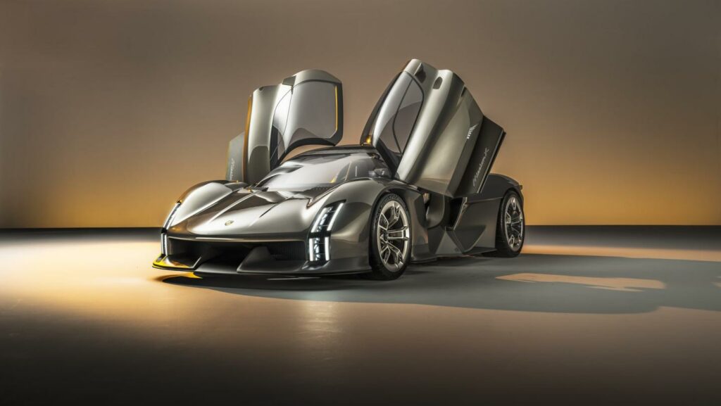 The Porsche Mission X combines the iconic design elements of legendary models such as the 959, Carrera GT, and 918 Spyder while the Le-Mans-style doors add a touch of drama and enhance its aerodynamic prowess.